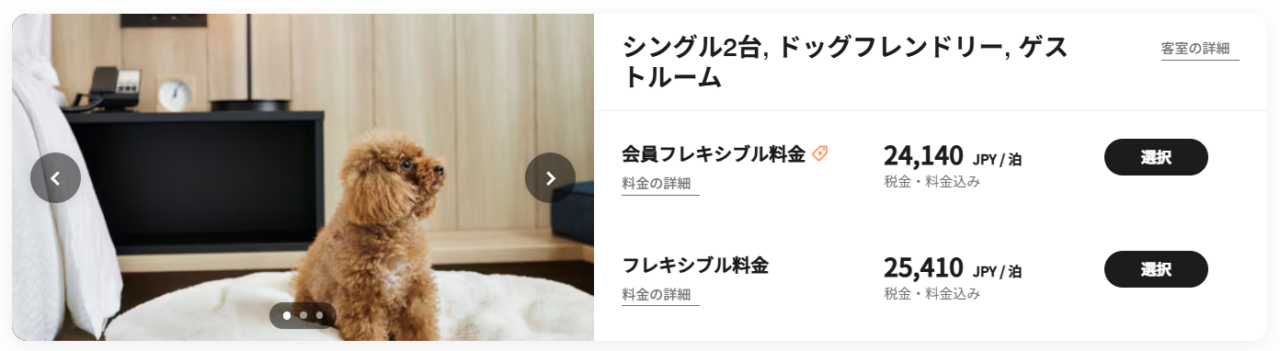 Dog Friendly Room:キング/ツイン 各25㎡の詳細