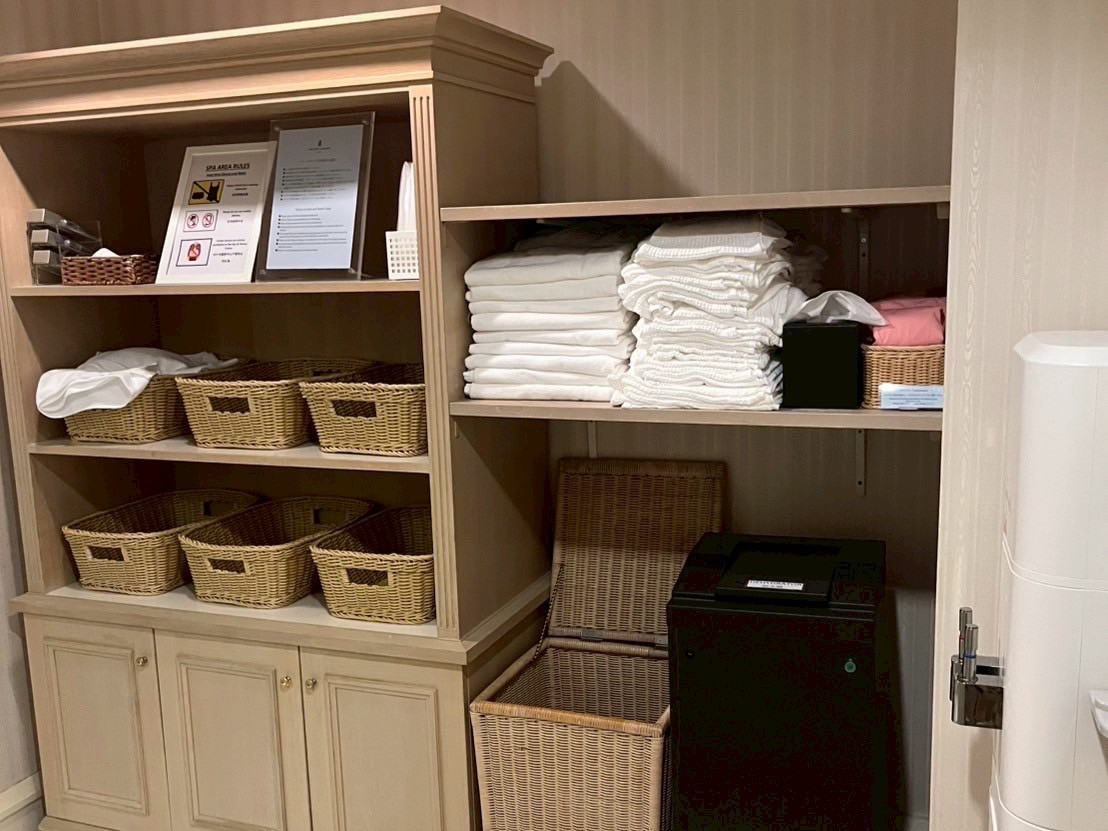 プールやスパを利用する前後に立ち寄る更衣室も、ザ・リッツ・カールトン大阪らしく上品な空間に仕上がっています。