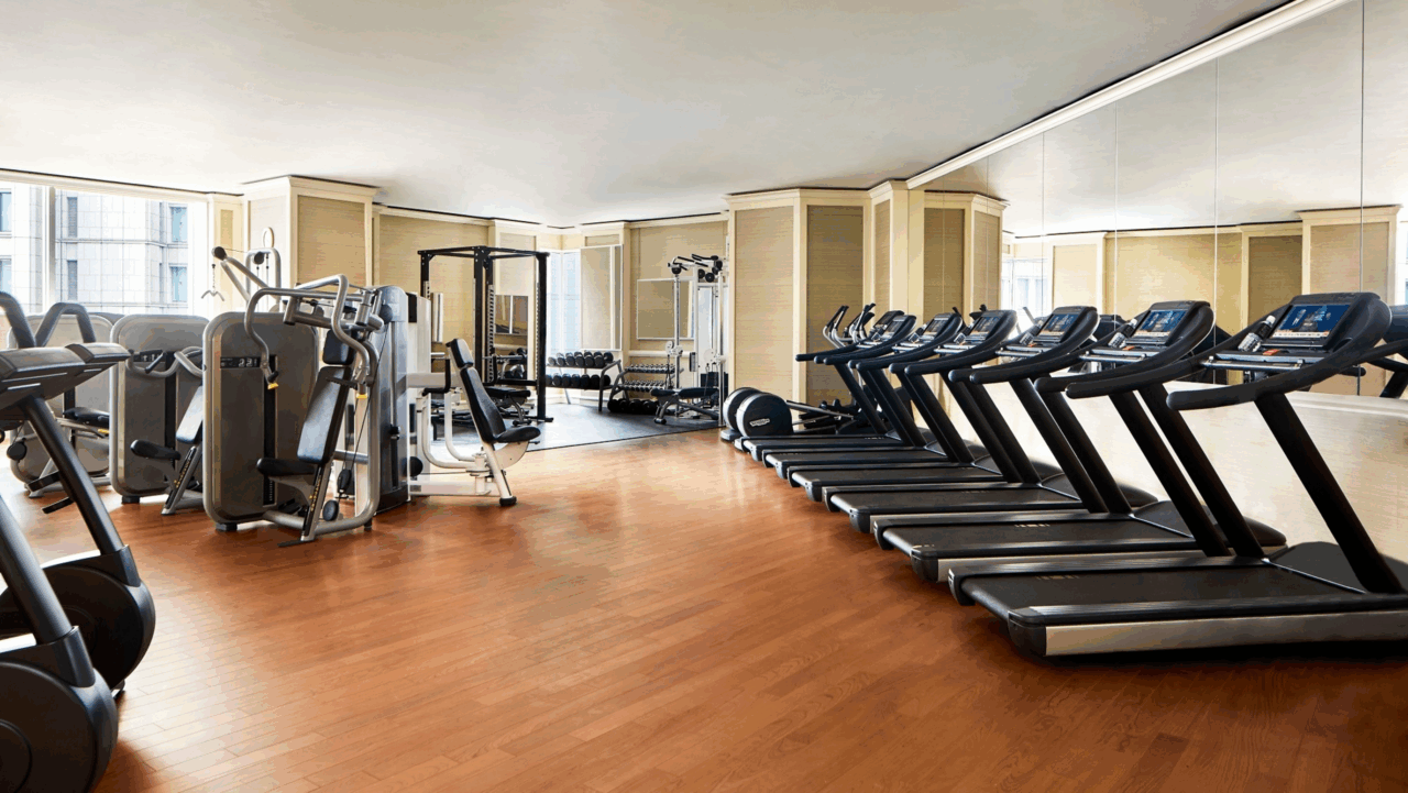 リッツ・カールトン大阪では、宿泊者なら誰でも無料で利用できる「スパ&フィットネス」施設が6階に用意されています。受付の奥へ進むと、落ち着いた雰囲気の空間が広がっており、心も身体もリフレッシュできる上質な設備が整っていました。